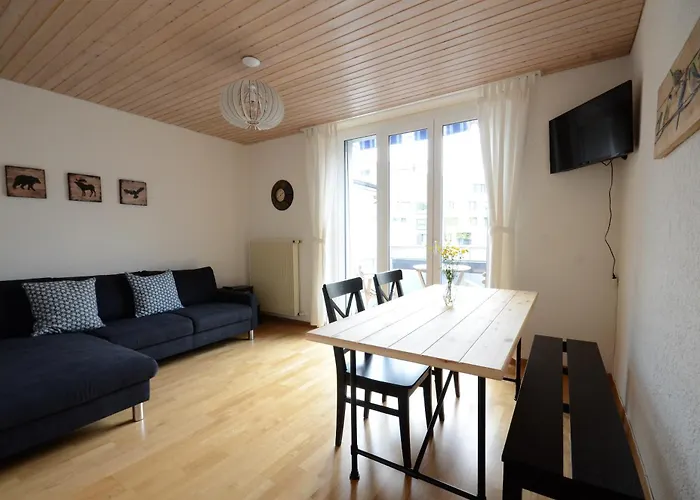- ❓Where is Interlaken Central 1 apartment located?Interlaken Central 1 apartment lies in the very heart of Interlaken, next to the nostalgic Heimwehfluh Funicular.